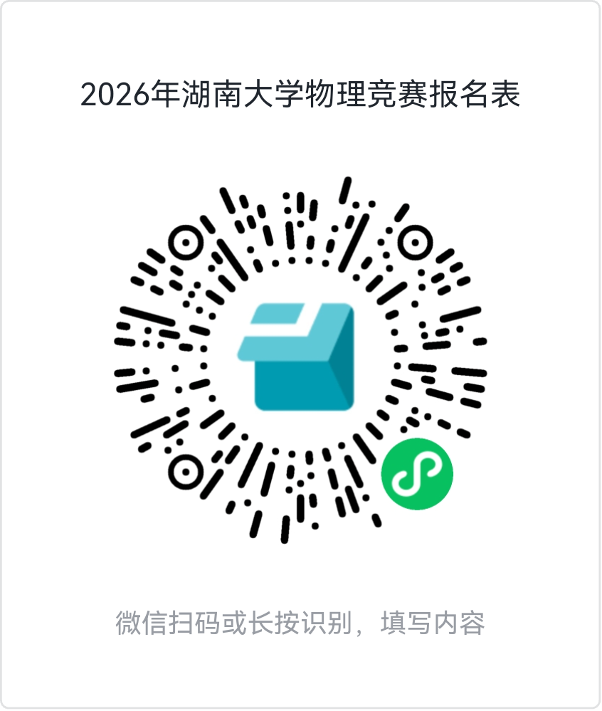 本次竞赛报名时间为3月17日-3月23日17:00。请于在线文档填写《2026年湖南大学物理竞赛报名表》,报名链接: